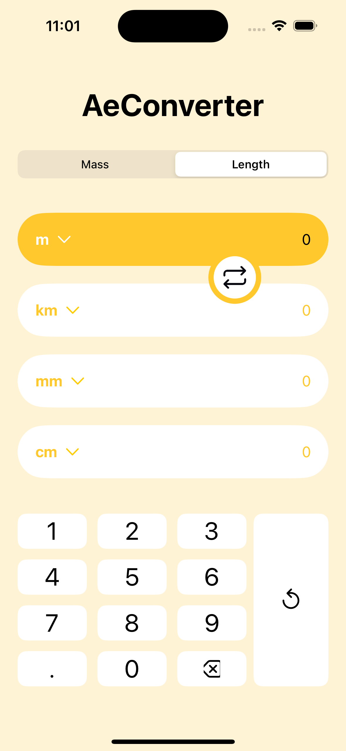 Toggle between mass and length conversions for complete flexibility.